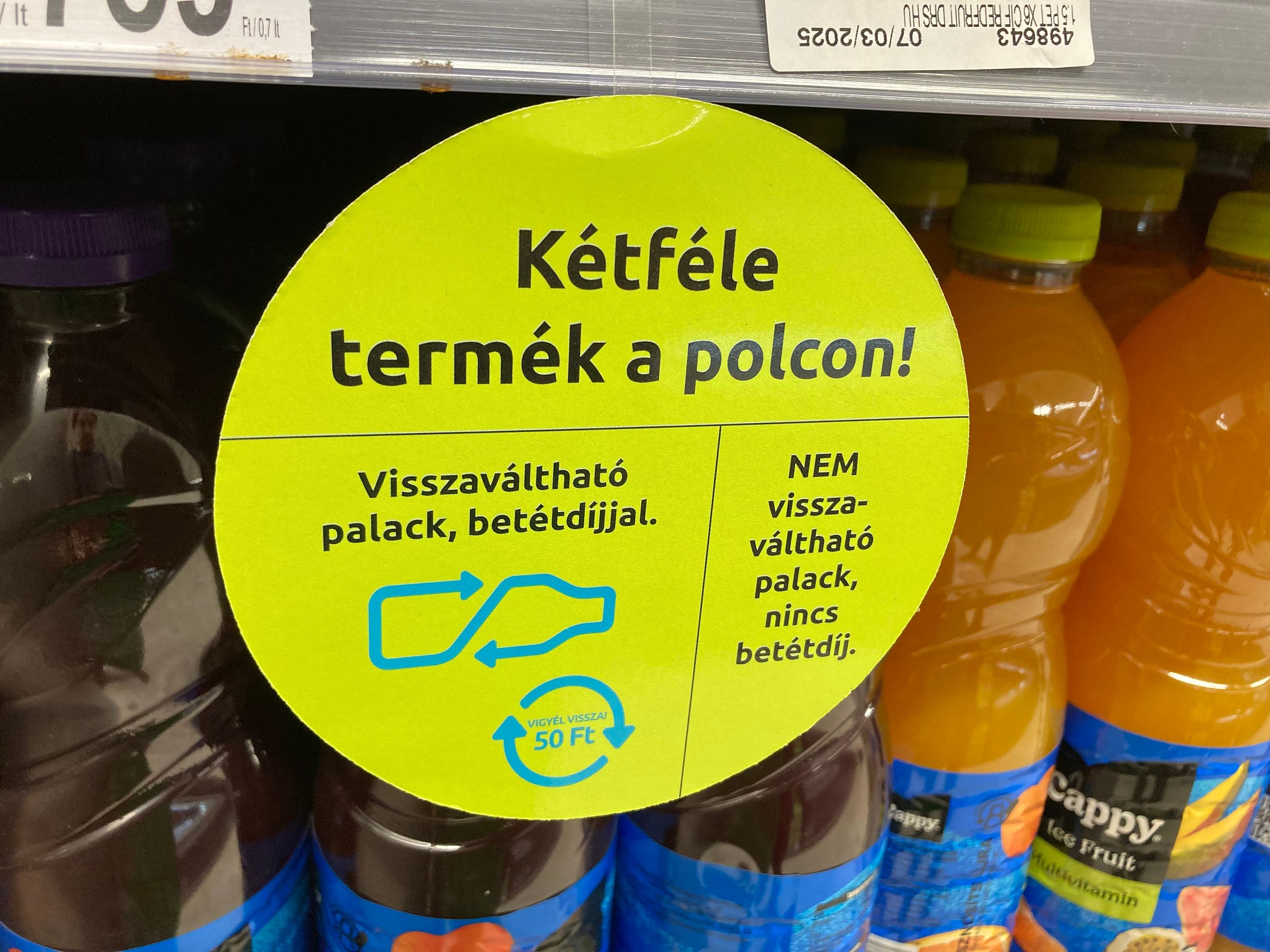 Ebben az esetben viszont teljesen érthetetlen, hogy a képen is látható feliratok miért kommunikálják azt, hogy egyetlen üveg sem visszaváltható, amelyen nem szerepel a két logó egyike, ha ez egész egyszerűen nem igaz.