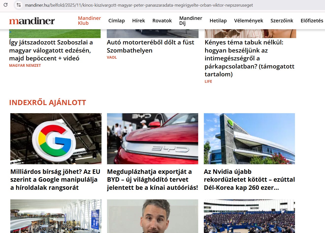 Bónusz: a Mandinernek már a mediaworksös forgalomterelő mellett Index-kiajánlója is van. A linkek egy része egyébként a lap cégének egy másik kiadványát, az Economx-et (az egykori napi.hu) hivatkozza.